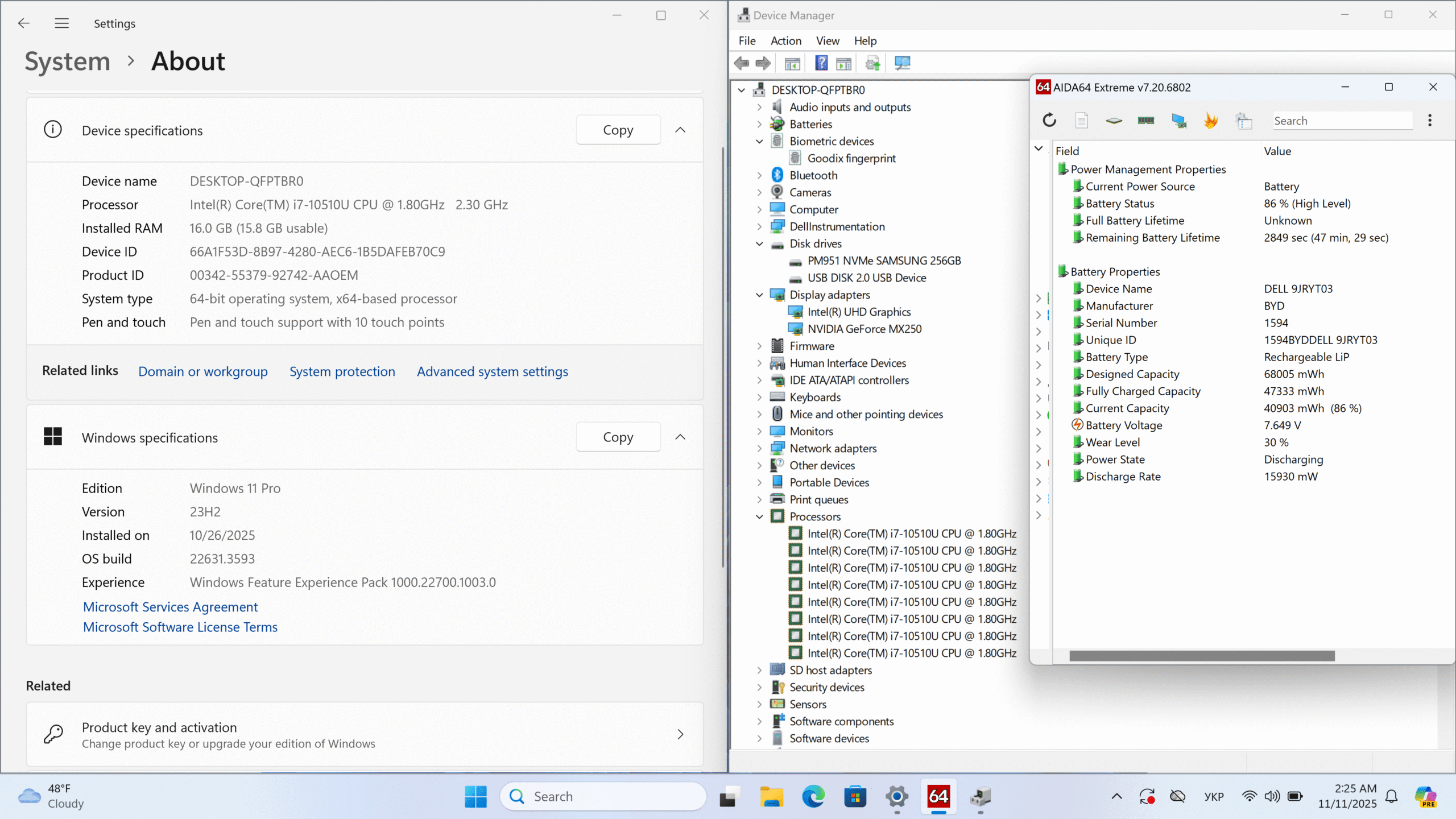 ✔ Графіка: NVIDIA GeForce MX250 2GB