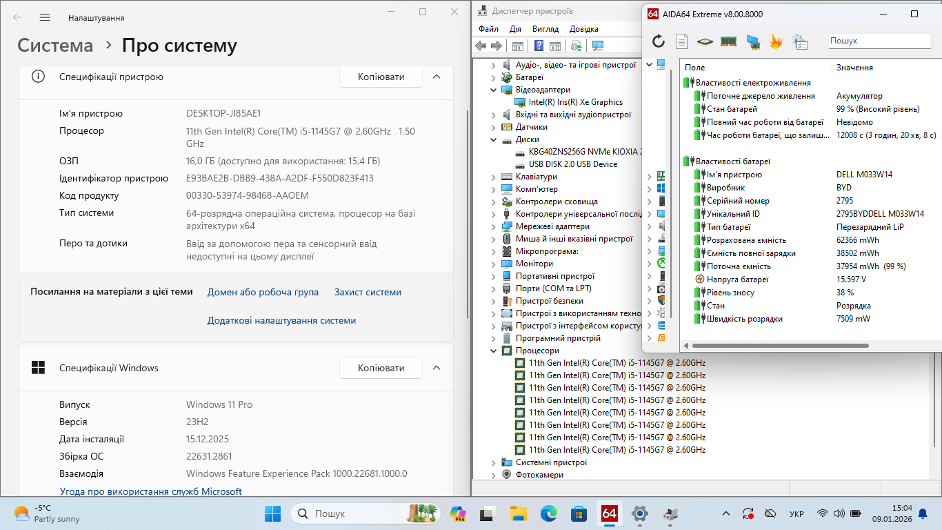 ✔ Процесор: Intel Core i5-1145G7 (4 ядра / 8 потоків, до 4.4GHz, vPro)