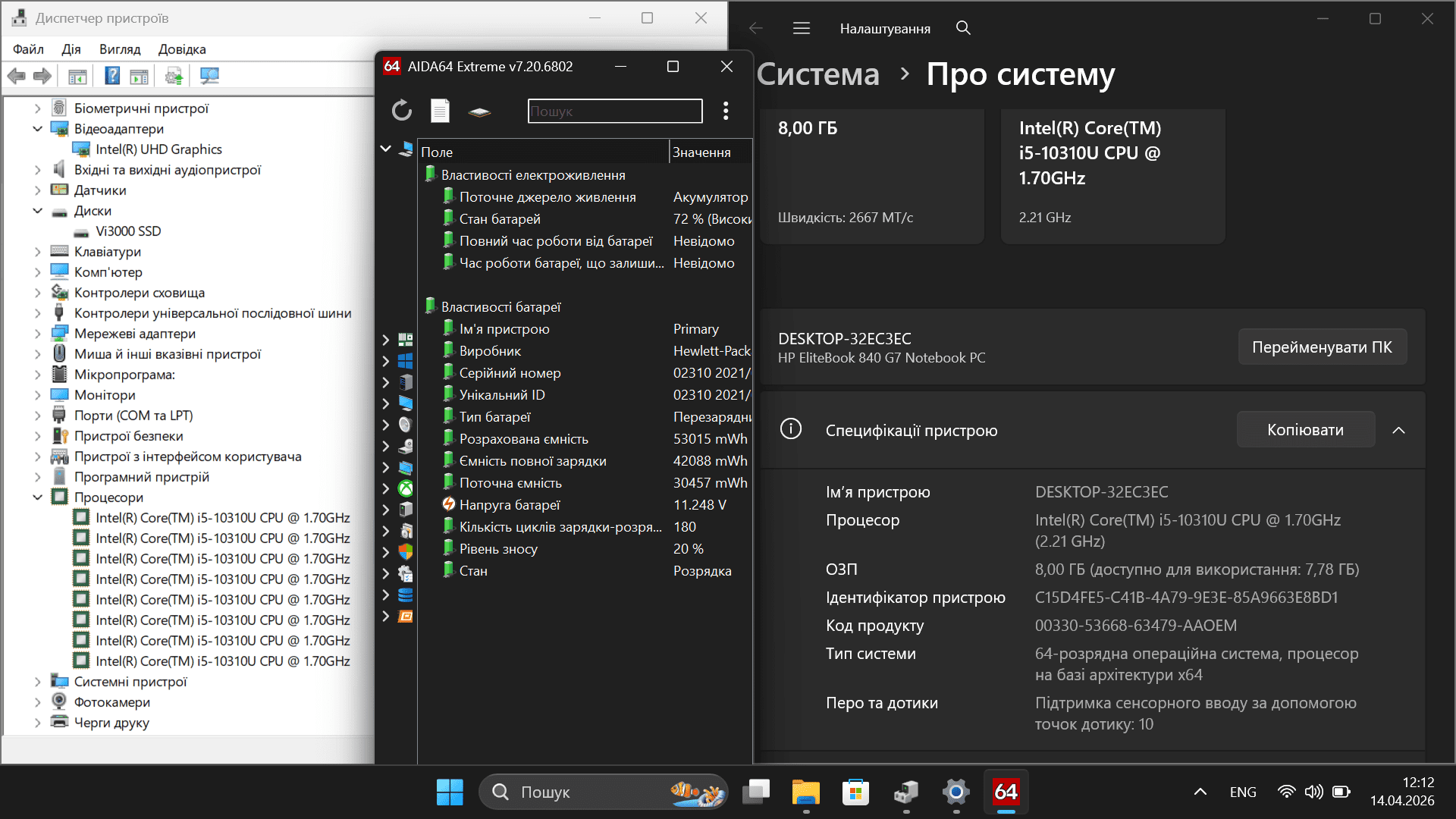 ✔ Батарея: знос 20%, орієнтовно 5–7 годин роботи