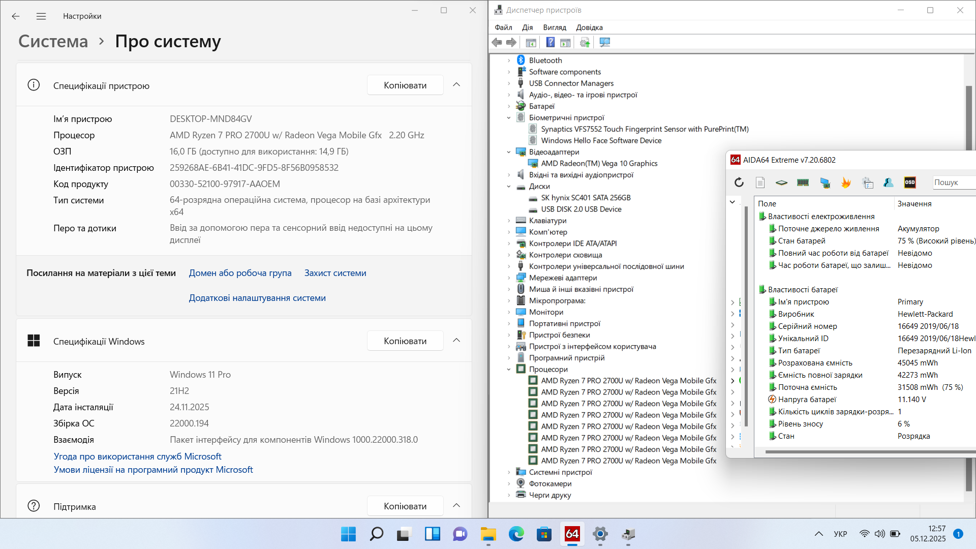 ✔ Процесор: AMD Ryzen 7 PRO 2700U